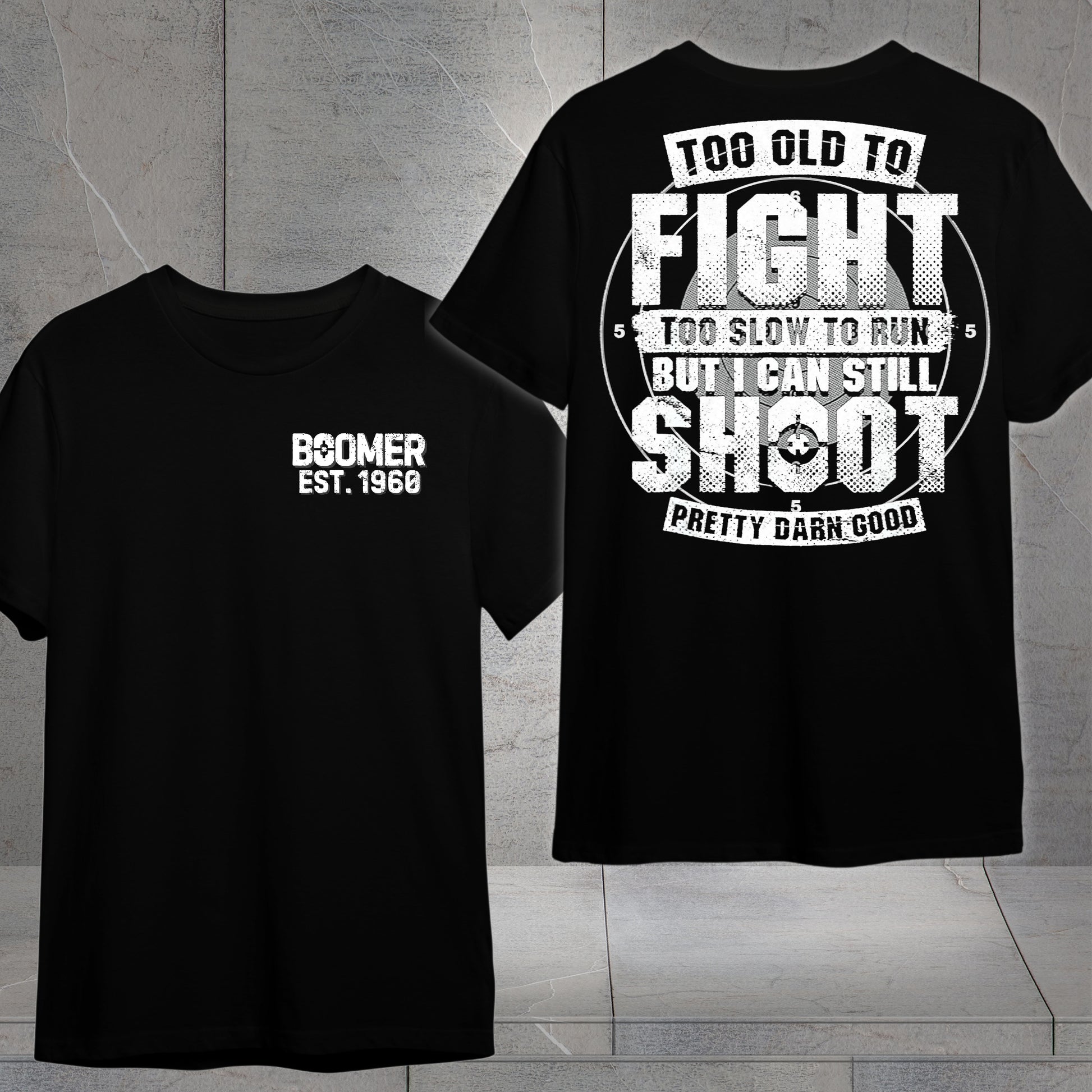 Boomer Custom Year T-shirt : Too old to fight to slow to run but i can still shoot